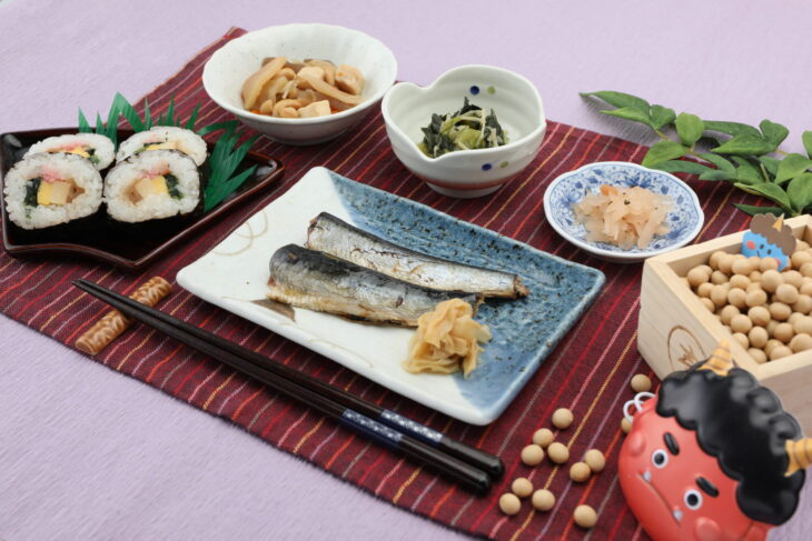 節分の献立といえば、恵方巻き、福豆、イワシが主役です。